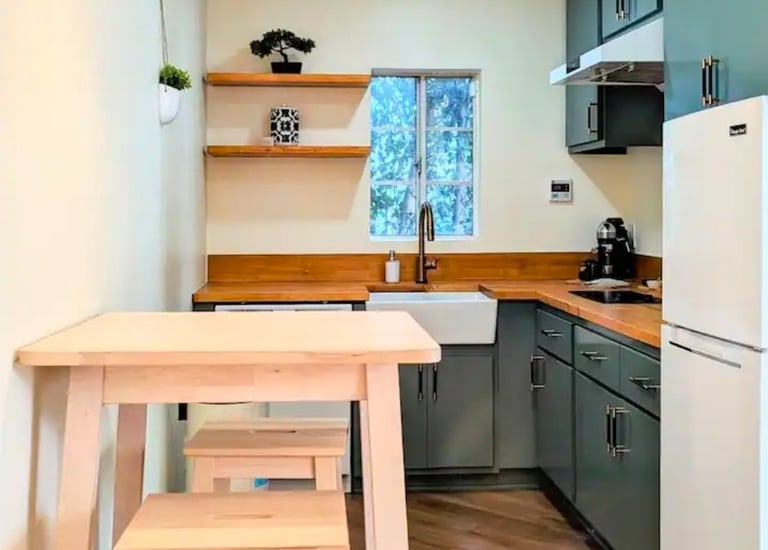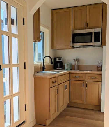 From Zero to Hero. White oak cabinets provide the look of fully customized cabinets at pre-fabricated costs.